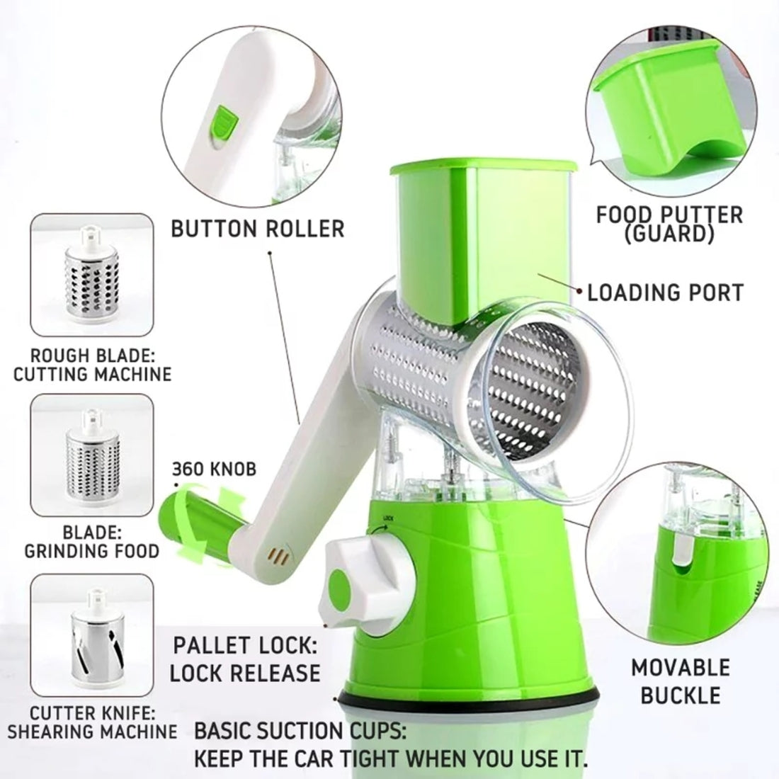 🌟🍳 Rallador de Tambor Giratorio 3 en 1 – Fácil, Rápido y Seguro 🥒🥕